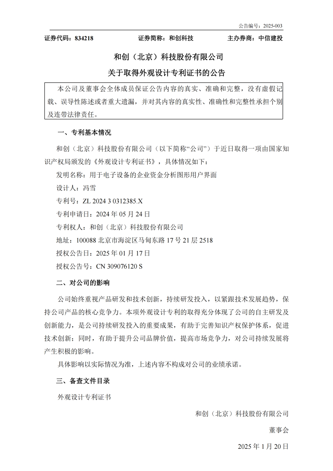在2025年的新春之際,和創(chuàng)科技以其卓越的創(chuàng)新能力和深厚的技術(shù)底蘊,迎來了科技研發(fā)的新里程碑——連續(xù)榮獲兩項最新專利認(rèn)證,分別是外觀發(fā)明專利《用于電子設(shè)備的企業(yè)資金分析圖形用戶界面》以及發(fā)明專利《一種數(shù)據(jù)處理方法、裝置及電子設(shè)備》。這兩項專利的取得,不僅標(biāo)志著和創(chuàng)科技在數(shù)字化資金管理領(lǐng)域的又一次重大突破,更為廣大工程企業(yè)用戶帶來了更為高效、便捷的資金管理解決方案。