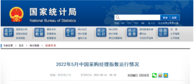 近日,國家統(tǒng)計局發(fā)布2022年5月中國采購經(jīng)理指數(shù)運行情況。